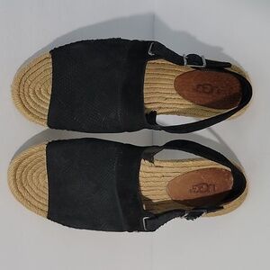 UGG Isadora Black Leather Snakeskin Slink Back Espadrille Sandals Women Sz 5.5