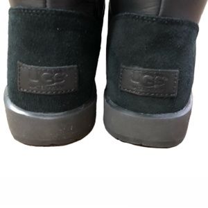 UGG Isley Black Waterproof Leather Pom Pom Boots, Size 6