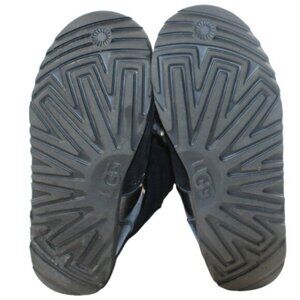 UGG Isley Shearling Lined Pom-Pom Black Shimmer Slip-On Tall Ankle Boot, Size 5
