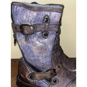UGG Italy Boots Adela Lamb Fur Shearling Leather Motorcycle Combat 7 B Moto