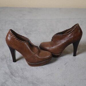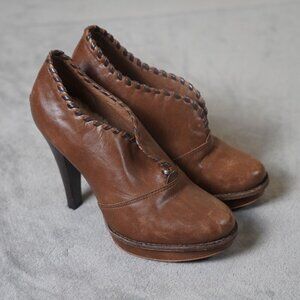 UGG Jamison Ankle Heeled Bootie Brown Distressed Leather Shearling Lined Size 8
