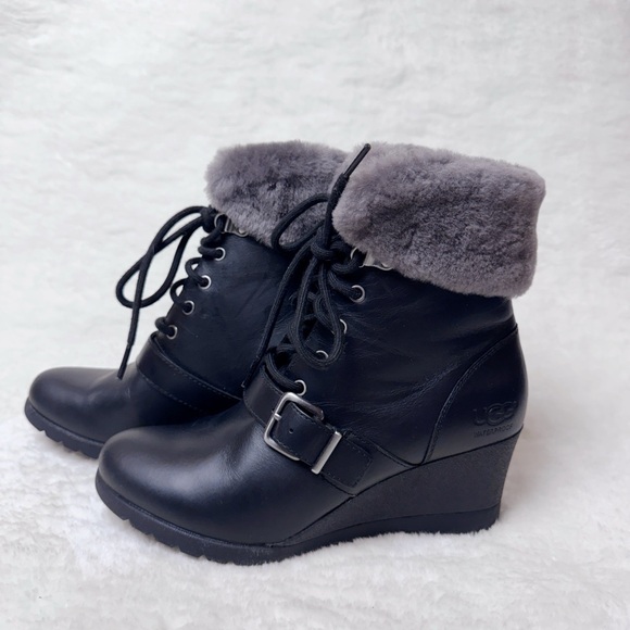 UGG Janney Women's Wedge Heel Boots Size 6.5 Sheepskin Lined Waterproof
