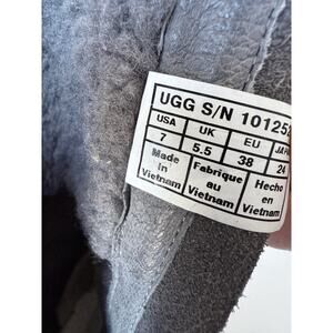 The UGG Joely Wedge Boot in size 7 is a stylish and practical footwear option for women. Made from gray leather with a waterproof design, these mid-calf boots feature a round toe, zip closure, and wedge heel for added comfort.