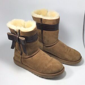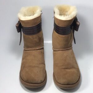 UGG Josette Leather Bow Shearling Boot Chestnut Size 6