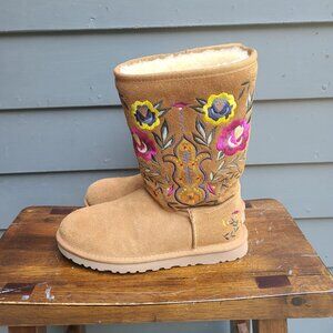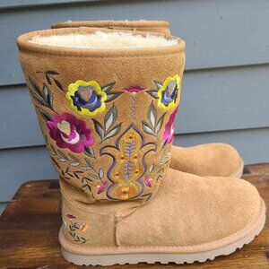 UGG Juliette Floral Embroidered Brown Suede Tall Boot size 6