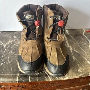 UGG KIDS TURLOCK LEATHER WEATHER WALNUT WATERPROOF SNOW BOOTS SIZE 4
