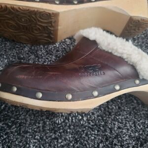 UGG 'Kalie' Naturally Distressed Shearling Lined Mules w/Wood Midsoles size 8