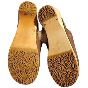 UGG 'Kalie' Naturally Distressed Shearling Lined Mules w/Wood Midsoles Sz. 7