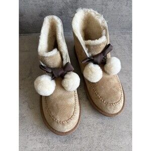 UGG Kallen Brown Chestnut Suede Pom Pom Bow Leather Slippers Women’s 8 WARM