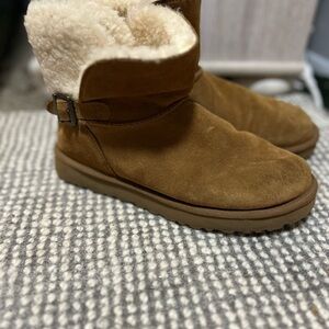 Warm suede boots with plush lining. Ideal for cold weather. Classic hight. Lightly used with some signs of wear on the toes.