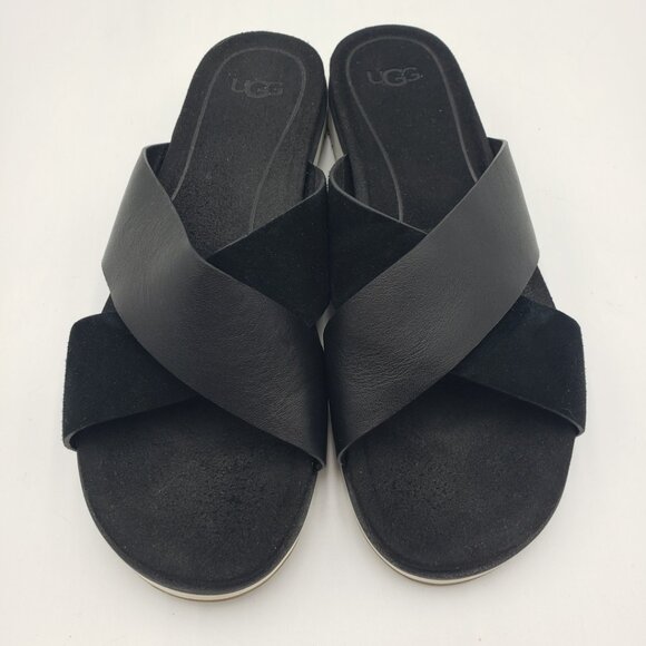 UGG Kari Criss Cross Sandals 7.5 Womens Leather Slip On Black