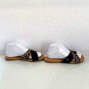 UGG Kenleigh Slide Sandals Leather Slip On Flats Tiger Stripes Size 7.5 NEW