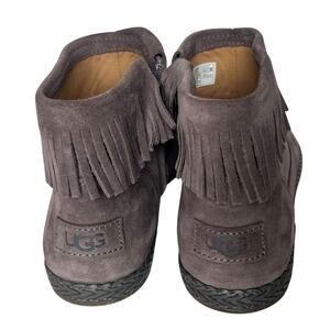 UGG Kennadi Suede Fringe Ankle Boots In Thunder Cloud Size 9.5