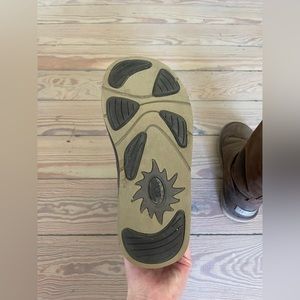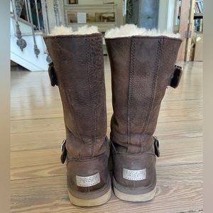 Used but in great condition, these warm, shearling lined leather Ugg boots with adjustable buckles are no longer available in the US.