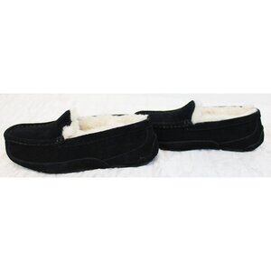 UGG Kid's Ascot Loafers sz 1 Black Suede Wool Fur Soft Comfortable Slipper