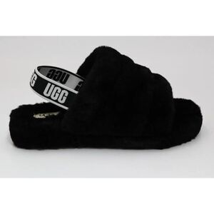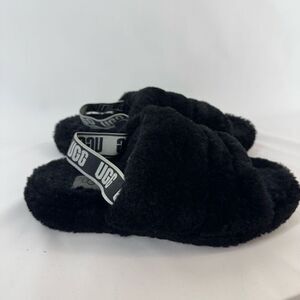 UGG Kid's Black Flat Strap Comfort Slip On Fluff Yeah Slide Sandal Size 6