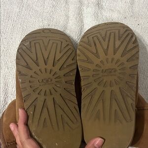 Cozy UGG boots for kids. Soft interior lining. Durable and stylish. Wear shown in pictures, still lots of life yet