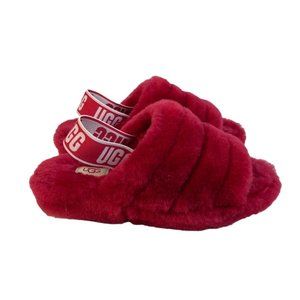 UGG Kids Fluff Yeah Red Fuax Fur Slide Slippers Sz 6