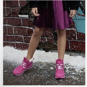 Vibrant fuchsia boots with adjustable straps. Cozy and stylish. Ideal for kids.