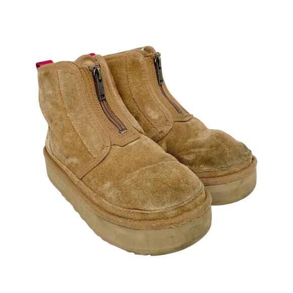 UGG Kid's Neumel Platform Suede Zip Boot Brown Suede Size 3