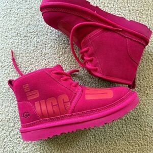 Stylish and comfortable, these UGG kids boots are perfect for any adventure. Featuring a vibrant pink color, they offer both warmth and style. Worn twice like new.
