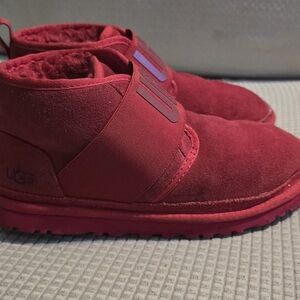 Warm and cozy UGG slippers for kids. Vibrant red color. Easy slip-on design.