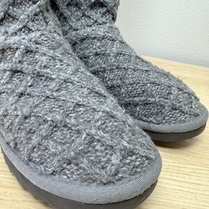 UGG Knit Boots Womens 7 Cardy Tall Sock Sweater Gray Lattice Australia Wool