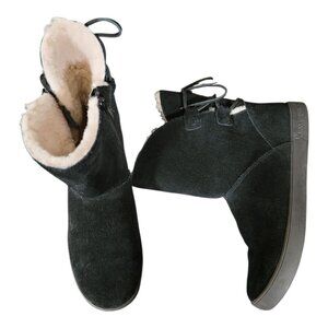 UGG Koolaburra Shazi Short Women's Winter Boots Black Faux Fur Suede Zip Lace