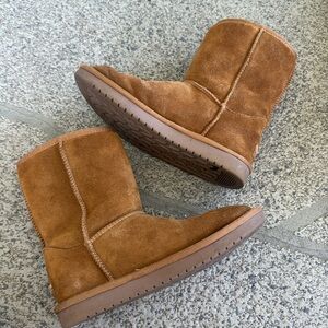UGG Koolaburra Victoria short girl’s brown faux fur lined bow side boots size 2