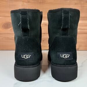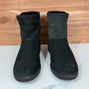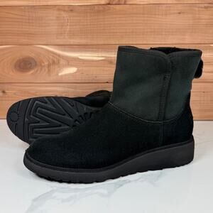 UGG Kristin Mini Platform Wedge Pull On Ankle Boot Black Suede Shearling size 9