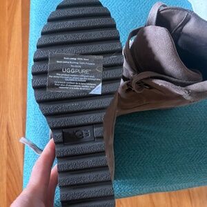 New conditions, Didn’t used it. Waterproof suede upgrades a classic bootie, updated with a trend-right wedge and razored traction sole. The soft, cozy lining is made from plush UGGpure™, a textile made entirely from wool but crafted to feel and wear like genuine shearling. Sizing: True to size. - Round toe - Lace-up style - Cushioned insole - Insulated - Waterproof, with sealed seams - Padded collar - Wedge heel - Lug sole - Approx. 4.5" shaft height