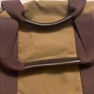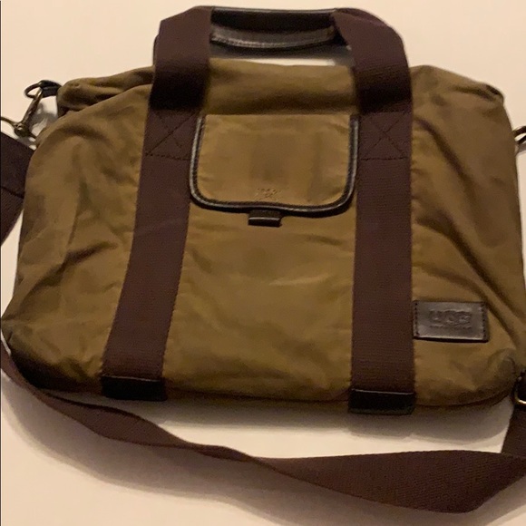 Great condition, padded inner pocket for laptop, small front pocket, adjustable shoulder strap, no rips or tears. Slightly dirty. Could use a good cleaning.