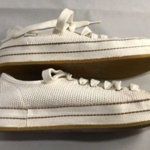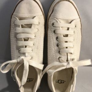 UGG LAUDI 1020094 SZ 7 Lace up Cream Beige Tan Fabric Sneakers Shoes VGC
