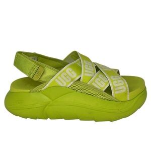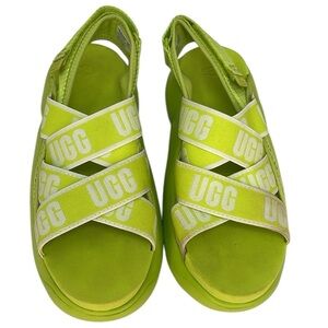 UGG La Cloud Neon Green Platform Sandals Logo Straps Size 7 Style 1110090