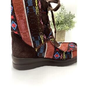 UGG Lacy Boot Nordic Fair Isle Aztec Boho Blanket Woven Fabric Faux Fur Warm Sz 7 limited