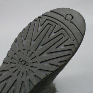 UGG Ladies 8 Mini Bailey Button Bling Gray Nubuck Suede Fur Ankle Boots 1003889