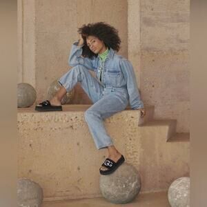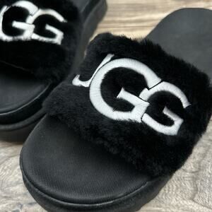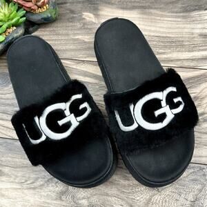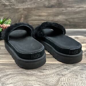 UGG Laton Fur Platform Slide Sandals Black Sheepskin 8 39