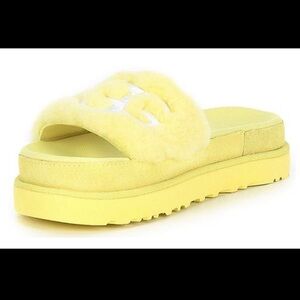 UGG Laton Fur Slide Sandals Yellow Sheepskin Logo Platform Women’s Size 8 NIB