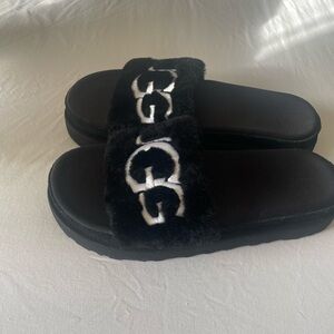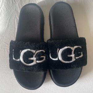 Like new! Worn once, UGG Laton fur slides black and white size 11