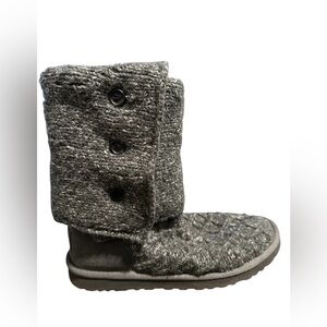 UGG Lattice Cardy Shearling Footbed Gray Knit Sweater Tall Boot Women 8 US 3066