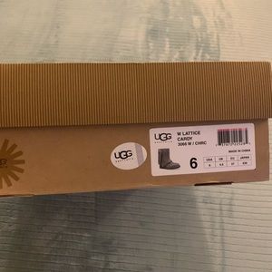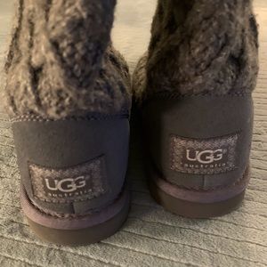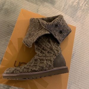 These boots are a beautiful charcoal grey with matching buttons. Worn once. Size 6. They are in excellent condition with box.