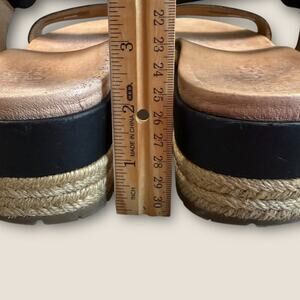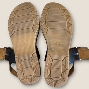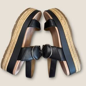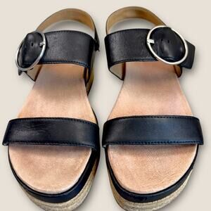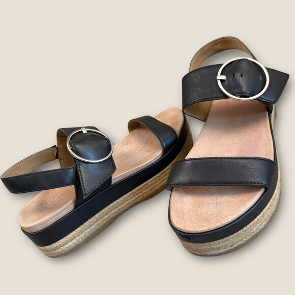 UGG Leather Ankle Strap Platform Espadrille Sandals Women Size 9.5 April Black