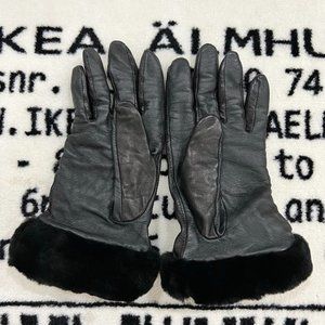 UGG Leather Fur Trim Gloves - Women Small/Medium.