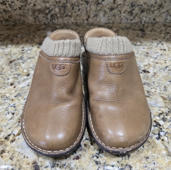 UGG Leather Gael Slip On Mules Brown 1934 Sheepskin Clog Wedge US 9 EU 40 Women
