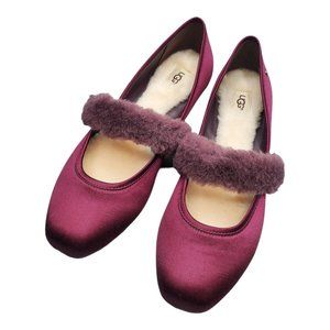 UGG Lena Fluff Ballet Flats Mary Jane Style in Burgundy Wine Color sz 9.5