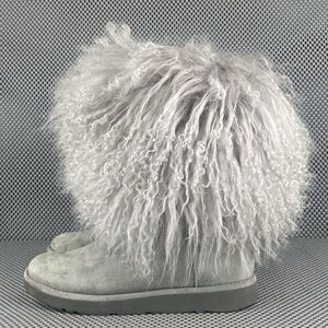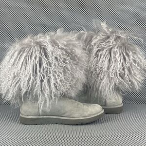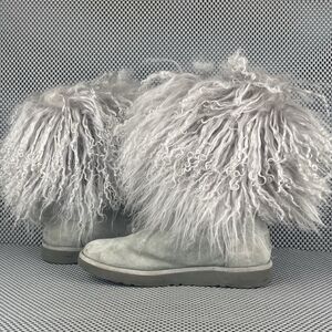 UGG Lida Mongolian Boots Womens Size 7 Gray Leather Sheepskin Rare 1017516