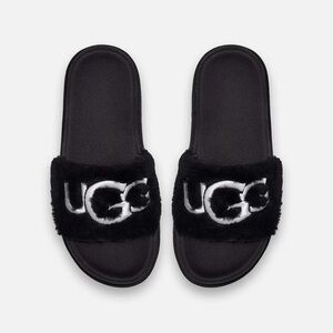 UGG Logo Black Laton Fur Slide