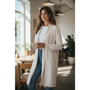 Excellent. Like New. Clean and Crisp. No Belt. This amazing cozy robe can also be used as a Duster Long Shaket as an open style. See modeling photos. See photos and description for more details.