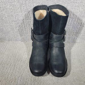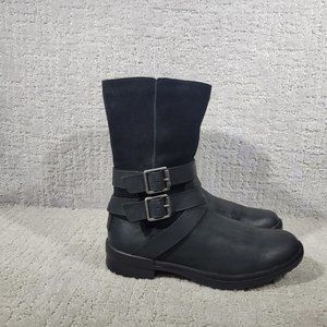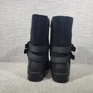 UGG Lorna Women's Size US 6 Black Suede Leather Ankle Biker Moto Boots 1095155
