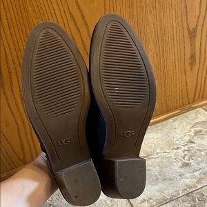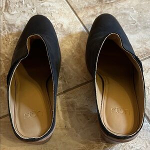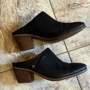 UGG Lovisa Women's Slip On Black Leather Mule Clogs Stacked Heel - Size 9.5